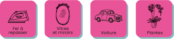 Vitres et miroirs : Pour un nettoyage sans traces, mélangez de l'eau déminéralisée avec du vinaigre ou du liquide vaisselle.