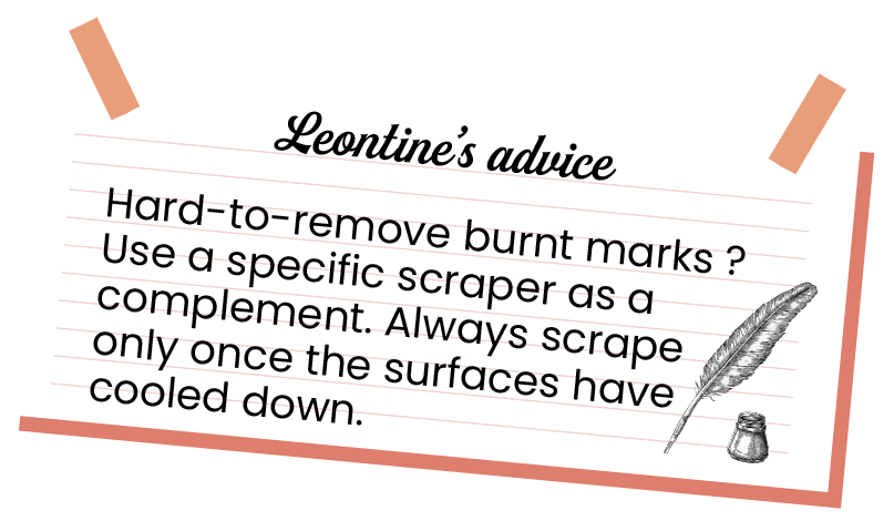 The degreasing recipe of leontine is composed of black soap and of soda crystals for boosting efficiency.
