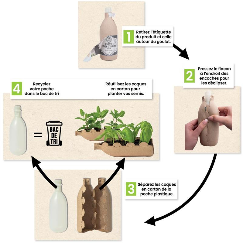 Its recycled cardboard hull and recycled plastic pocket limit waste while preserving the robustness of the product.