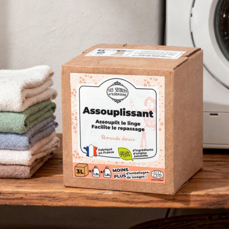 Léontine biedt u de zijne wasverzachter voor linnen gecomponeerd met 99.60% van de natuurlijke ingrediënten.
